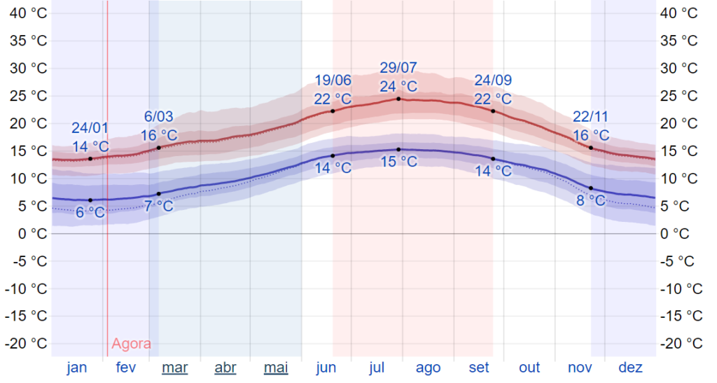 • Em média, os meses mais quentes são Julho, Agosto e Setembro